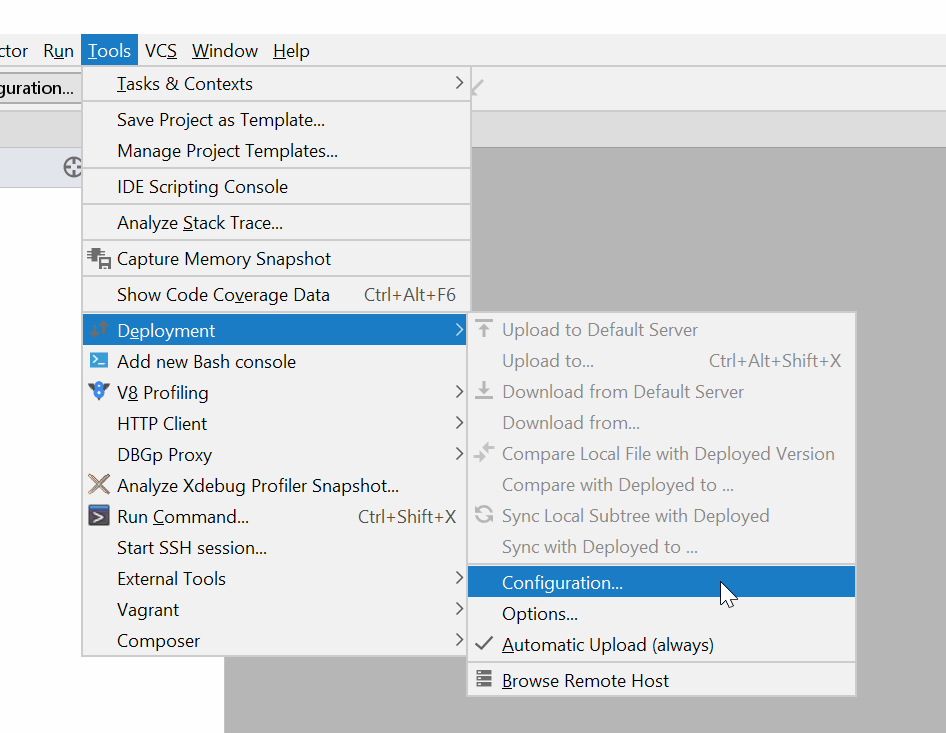 Configuration for other editors follows the same principle, only the menu location will differ.